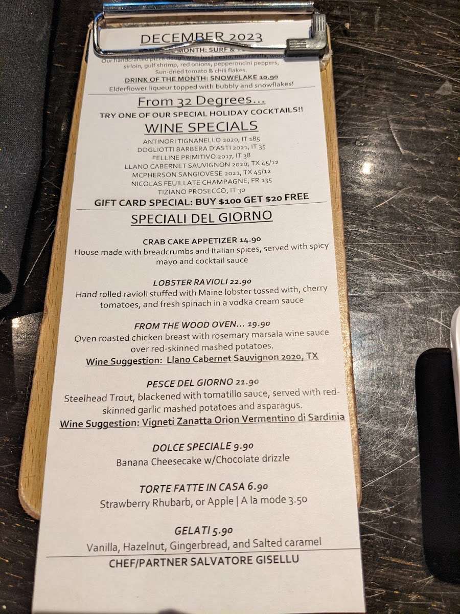 From the moment you step inside, the enticing aromas wafting from the wood-fired oven will make your mouth water. Customers have raved about the complimentary freshly baked bread served with olive tapenade and tomato sauce, a delightful starter that sets the tone for a memorable meal. One reviewer mentioned the “excellent mushroom appetizer” which paired perfectly with pizzas, showcasing how the kitchen prepares each dish with attention to flavor and freshness. Desserts here are also not to be missed, with options like the rich JeanneMarie’s Chocolate Cake and the creamy Tiramisu—both perfect enders to an exceptional dining experience.